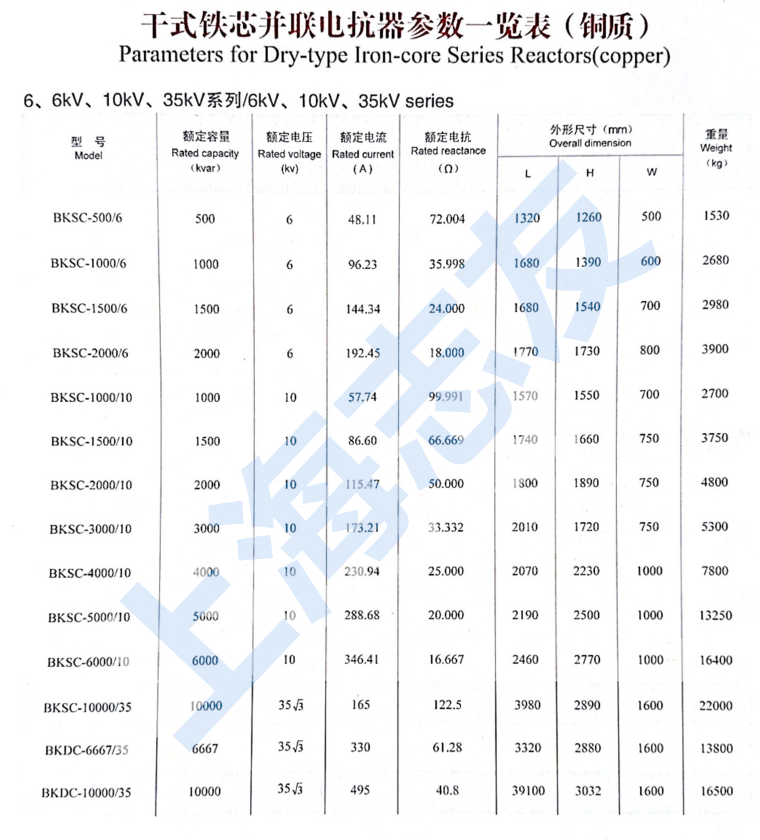 10kV、35kV干式鐵芯并聯(lián)電抗器